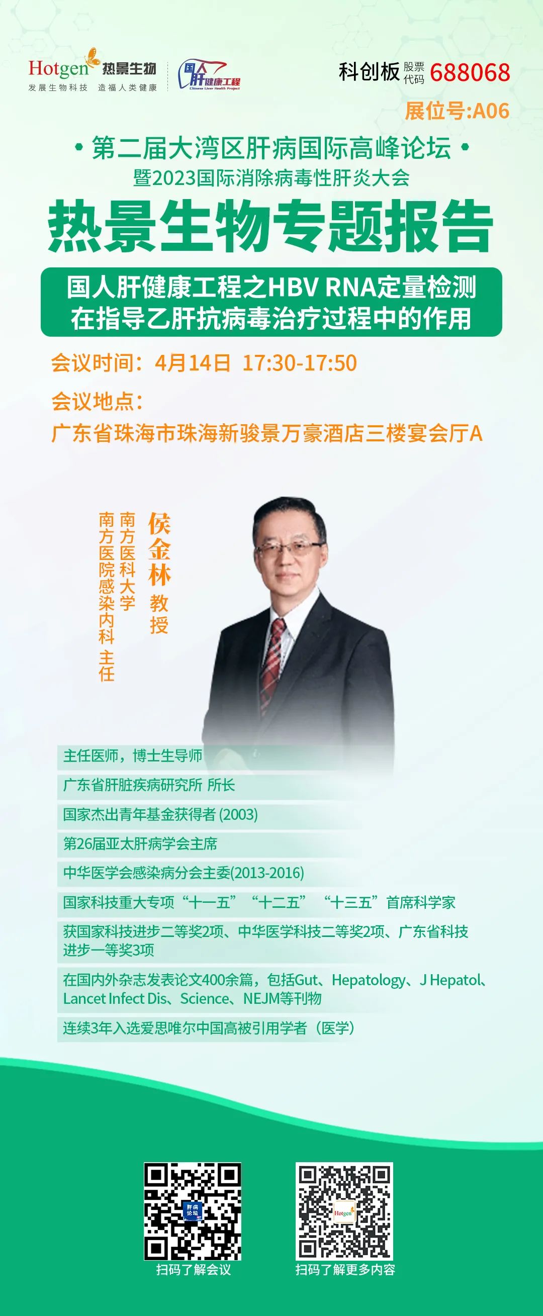 4月14日下午17:30-17:50,南方醫(yī)科大學(xué)南方醫(yī)院感染內(nèi)科主任侯金林教授受邀進(jìn)行熱景生物專題研討會(huì)《國(guó)人肝健康工程之HBV RNA定量檢測(cè)在指導(dǎo)乙肝抗病毒治療過(guò)程中的作用》。