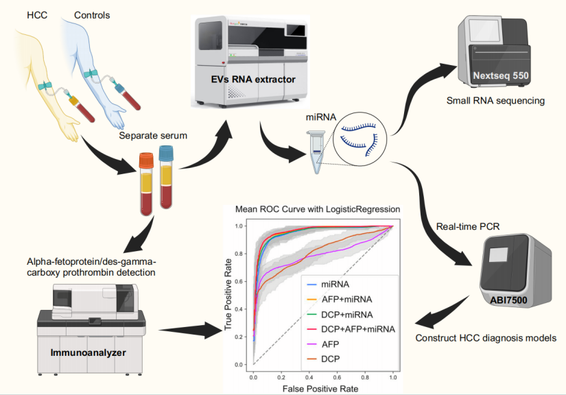 綜上所述,基于miRNA和AFP特征的HCC分類模型實(shí)現(xiàn)了精準(zhǔn)診斷,標(biāo)志著肝癌早期篩查領(lǐng)域的重大突破。肝癌外泌體miRNA產(chǎn)品以其高度準(zhǔn)確性和非侵入性,為臨床診斷帶來(lái)了新的希望,助力全球肝癌患者獲得更精準(zhǔn)的治療。這一研究成果不僅推動(dòng)了肝癌研究與臨床實(shí)踐的進(jìn)展,也為實(shí)現(xiàn)更有效的早期篩查和治療方案奠定了堅(jiān)實(shí)基礎(chǔ)。