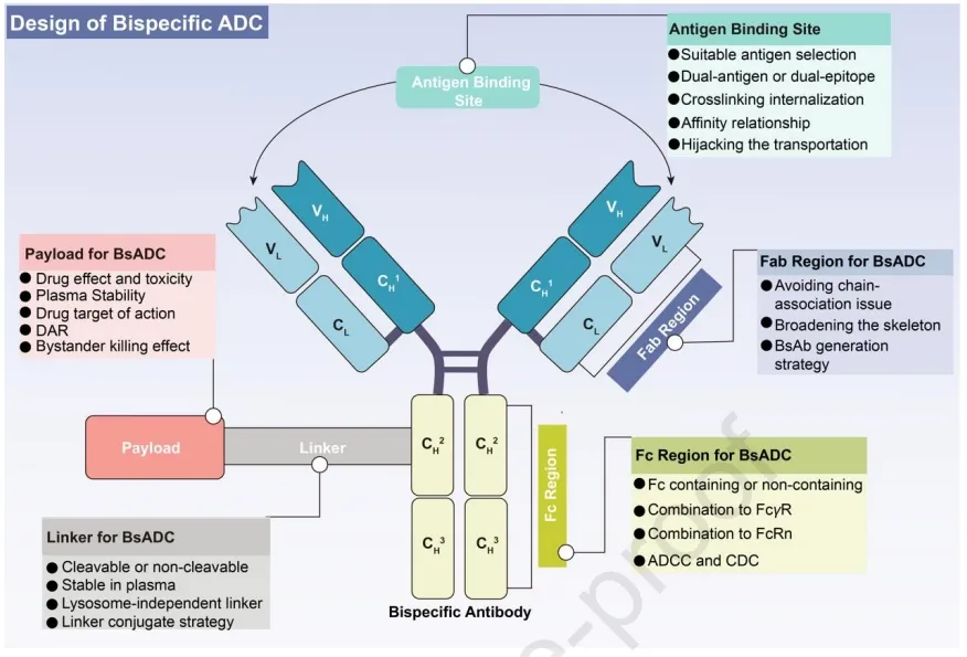 BsADC代表了一種融合ADC和BsAbs優(yōu)勢的新型治療類別。然而,其面臨的挑戰(zhàn)依然存在,主要?dú)w因于實(shí)體瘤的復(fù)雜性,包括異質(zhì)性、組織學(xué)障礙和滲透性差等。必須完善BsADC的設(shè)計(jì)策略以克服這些挑戰(zhàn)。