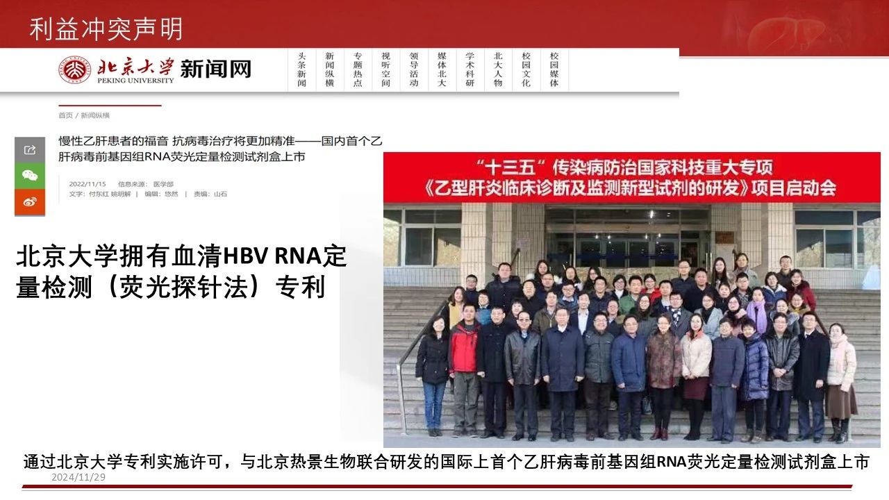 PS:北京大學(xué)擁有血清HBV RNA定量檢測(cè)(熒光探針法)專利,通過北京大學(xué)專利實(shí)施許可,與北京熱景生物聯(lián)合研發(fā)的國際上首個(gè)乙肝病毒前基因組RNA熒光定量檢測(cè)試劑盒已上市。