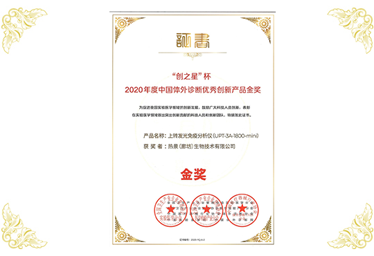 創(chuàng)之星杯2020年度中國體外診斷優(yōu)秀創(chuàng)新產(chǎn)品金獎(jiǎng)